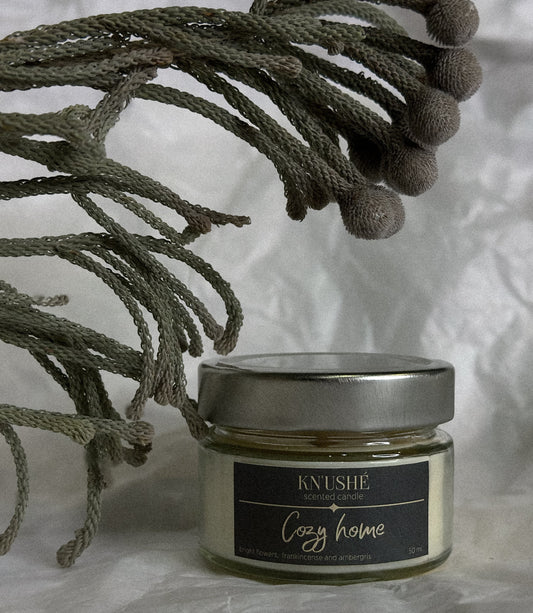 Scented candle made of vegetable soy wax with "Cozy home" scent