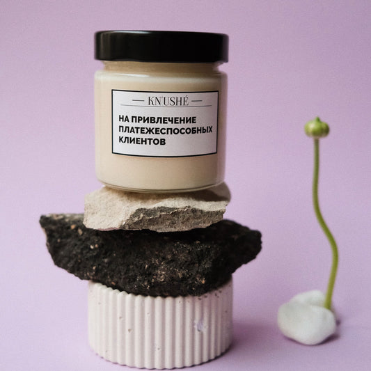 Соевая свеча «НА ПРИВЛЕЧЕНИЕ ПЛАТЕЖЕСПОСОБНЫХ КЛИЕНТОВ»