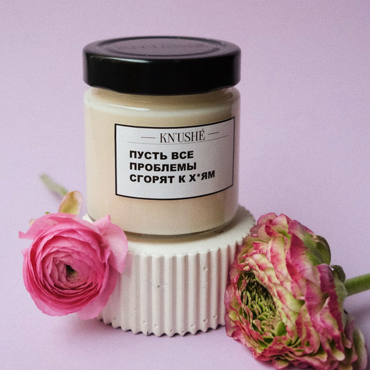 Соевая свеча «ПУСТЬ ВСЕ ПРОБЛЕМЫ СГОРЯТ К Х*ЯМ»