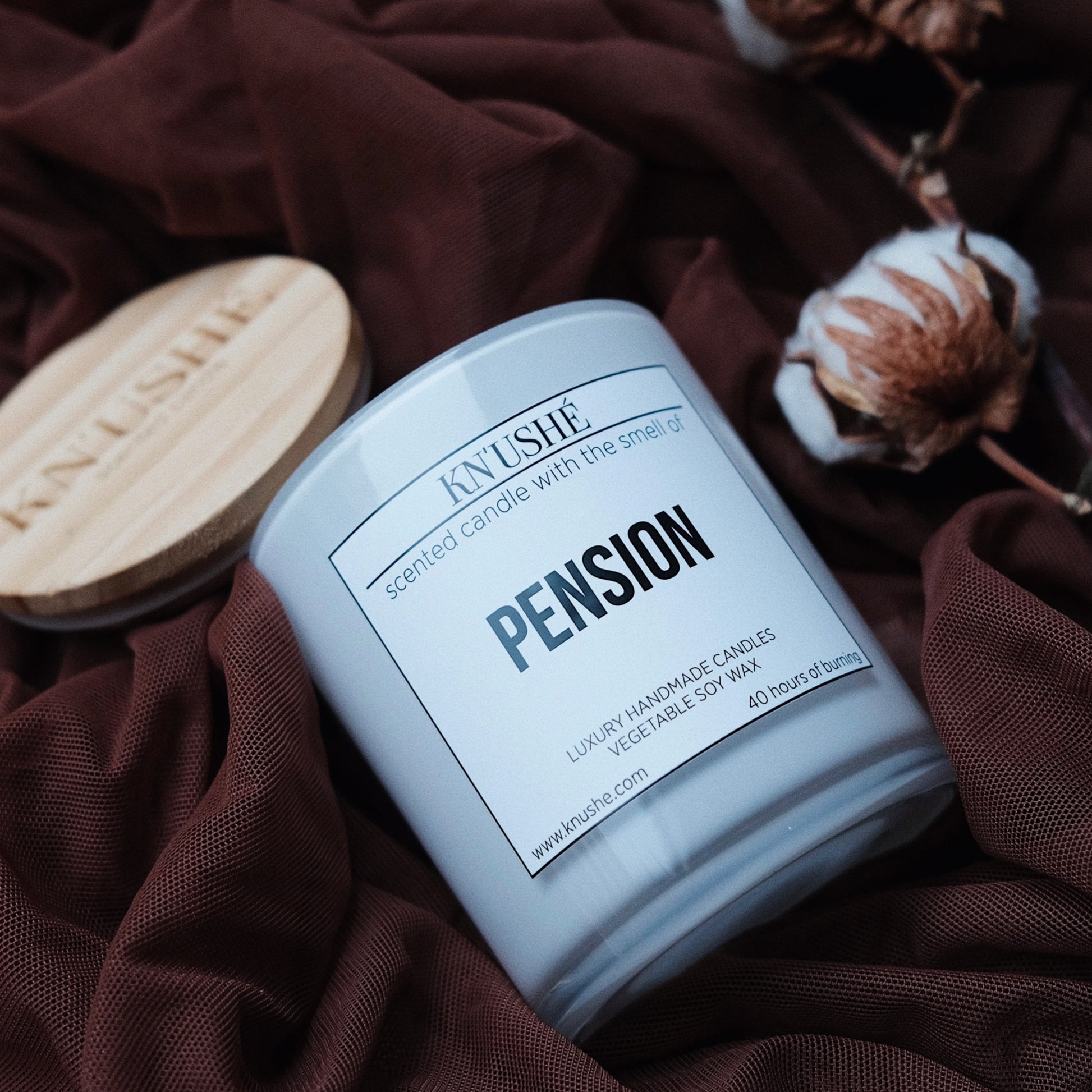 Scented candle with the smell of "PENSION"