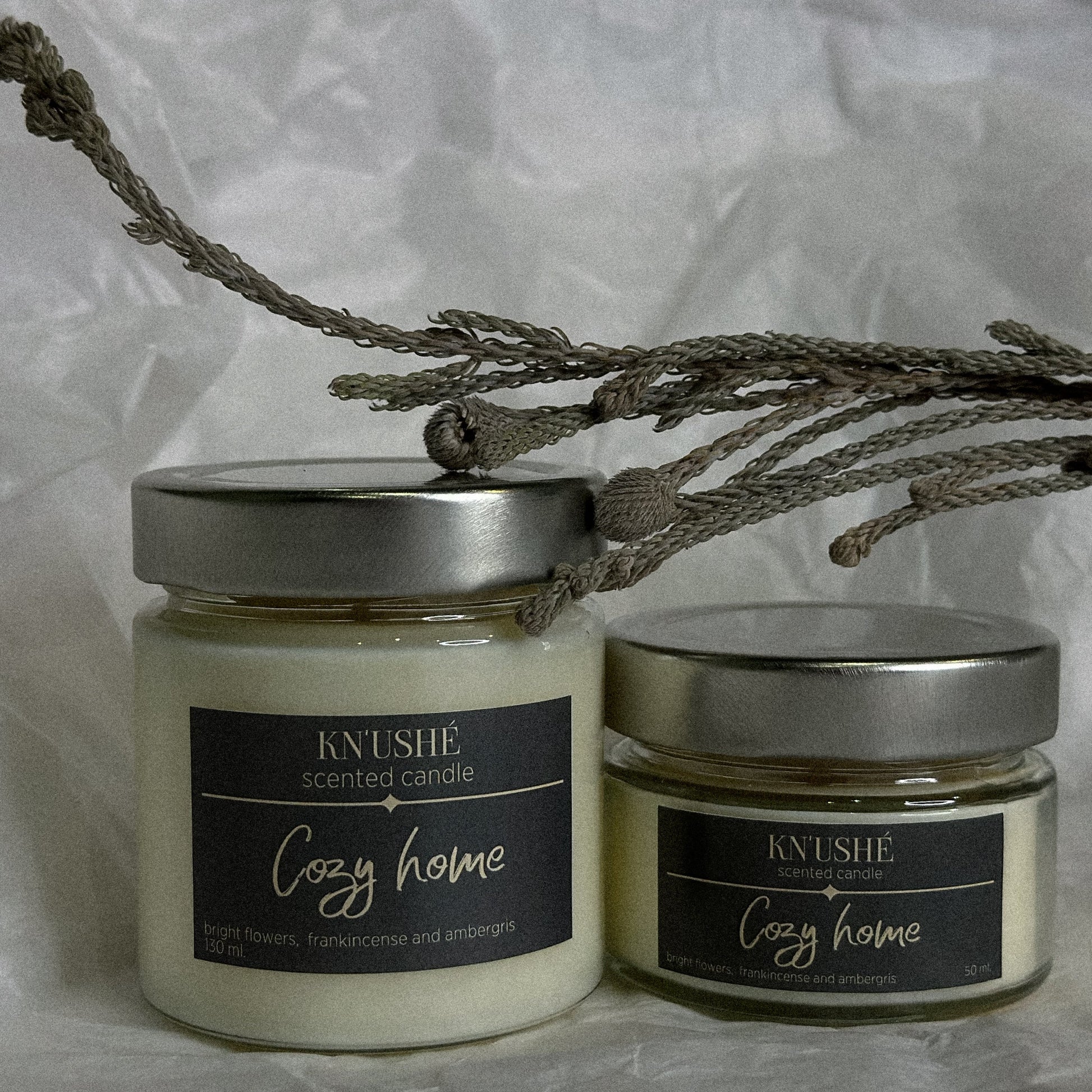 Scented candle made of vegetable soy wax with "Cozy home" scent