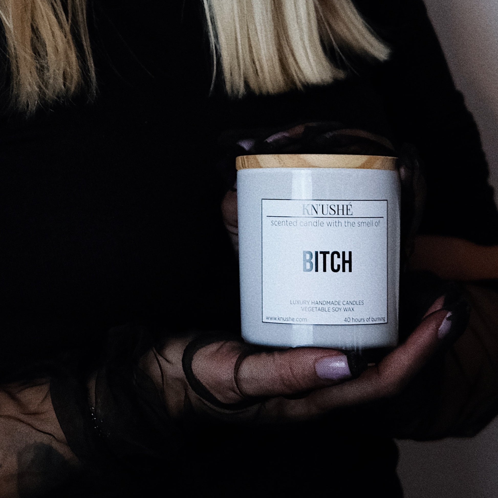 Scented candle with the smell of "BITCH"