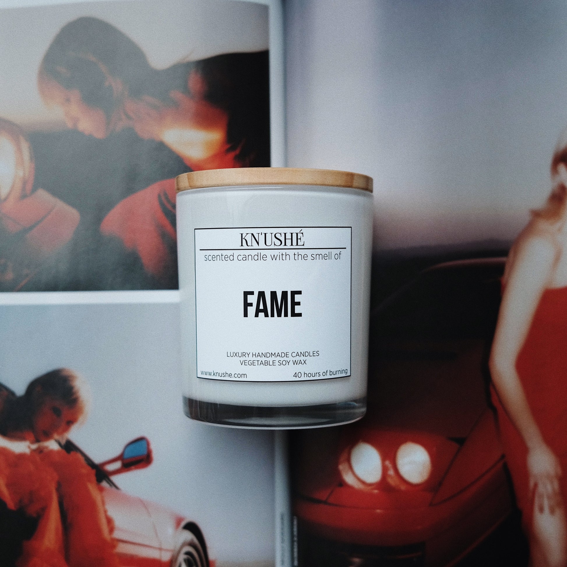 Scented candle with a crinkling wooden wick made from vegetable soy wax.