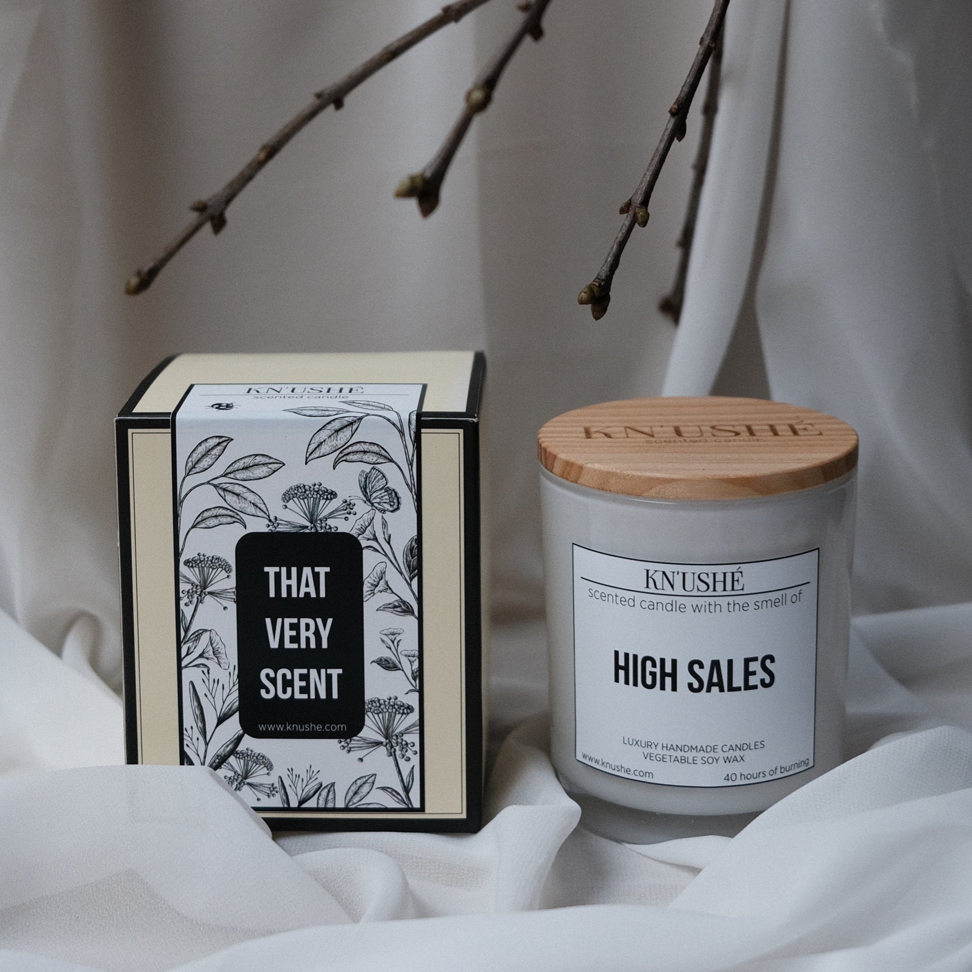 Scented candle with a crinkling wooden wick made from vegetable soy wax.