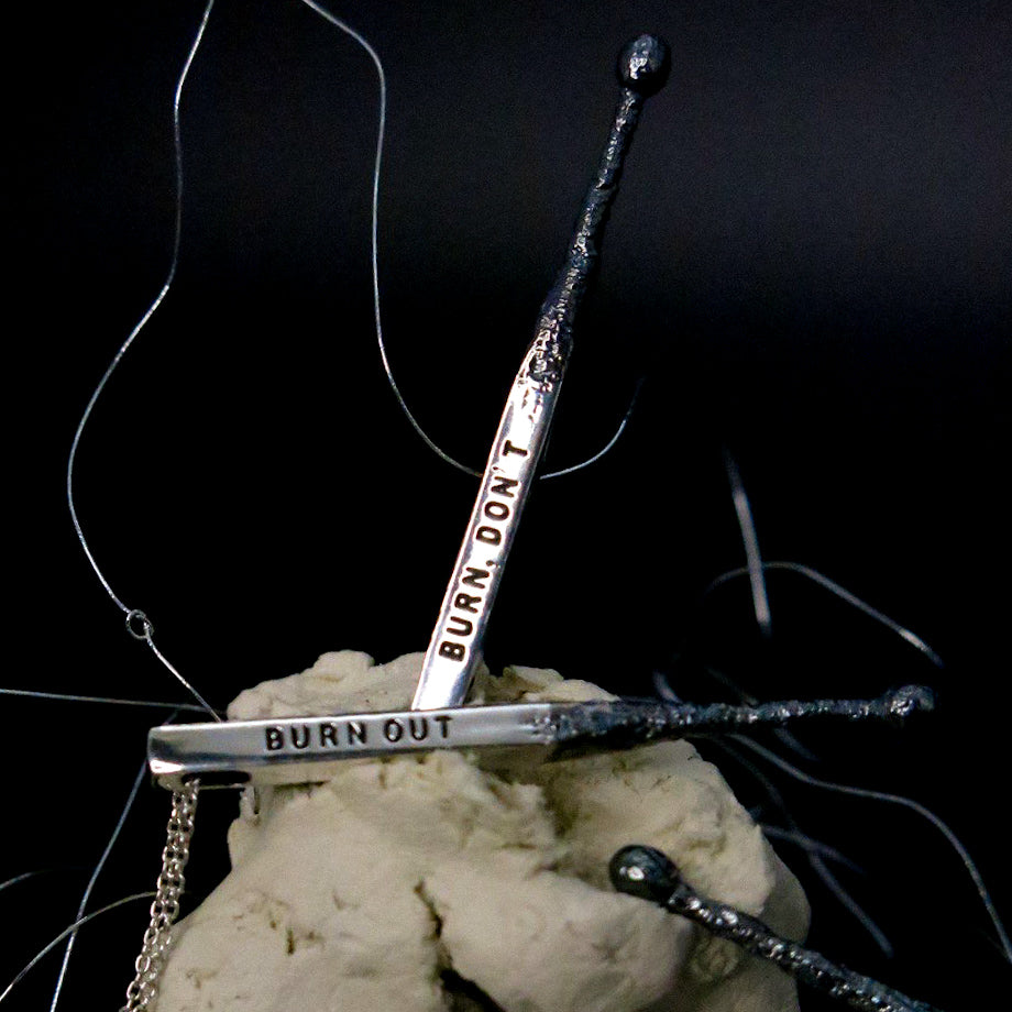 A symbol of inner fire, inspiration, and balance — the “Burn, Don’t Burn Out” silver pendant.